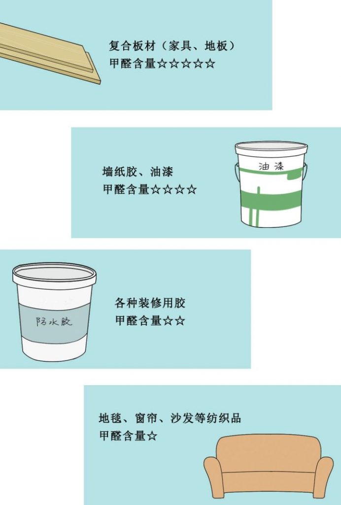 看到甲醛这么可怕,我们躲还不行么?但是有一个扎心的事实,你还真躲不掉他。现在工业的发展还不足以让我们不使用它。现在很多家具和木地板的原材料都是复合板材。这种板材的胶黏剂全是不可避免的使用大量甲醛。有可能你家的每个角落都被甲醛霸占了。